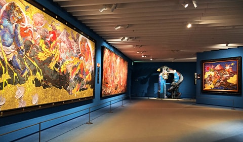 Offering fantastic views from the 27th floor of the Umeda Sky Building, the state-of-the-art Koji Kinutani Tenku Art Museum has been eagerly anticipated by art lovers everywhere. It incorporates the world's first attempt at allowing the viewer to delve into the artwork through the use of 3D visuals in addition to numerous fresco and mixed-media paintings and sculptures. The museum also boasts a playful workshop and atelier space, and also features a relaxing café. We welcome visitors from all around the world and invite them to experience the enchanting world of Kinutani’s art.